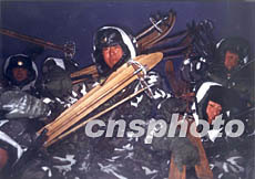 十二月寒冬,沈陽軍區(qū)一支野戰(zhàn)部隊在林海雪原之夜進行反恐怖戰(zhàn)爭演練,利用雪撬運動快速反應作戰(zhàn)。作者:蓋旭輝