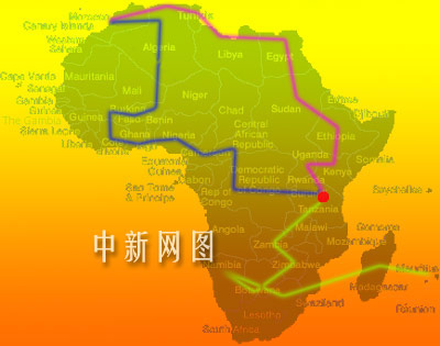 其中,作為學(xué)者的葛劍雄將跟隨攝制組的北線(圖中紅線)隊(duì)伍,采訪路線為:摩洛哥(卡薩布蘭卡)——(途經(jīng)阿爾及利亞)——突尼斯——利比亞——埃及——(逆尼羅河而上)——蘇丹——埃塞俄比亞——肯尼亞——烏干達(dá)————坦桑尼亞,共八個(gè)國家。