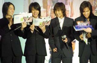 中新網(wǎng)12月19日電 以《流星花園》走紅全亞洲的臺灣超人氣團體“F4”,在新力唱片公司的力捧下,于18日下午移師香港,舉行新專輯《煙火的季節(jié)》發(fā)表會。