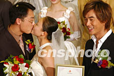 香港旅游發(fā)展局十二月二十日在“香港繽紛冬日節(jié)”,歌星任賢齊為來自中國華東及華南地區(qū)的七十五對有情人證婚。錢興強(qiáng) 攝