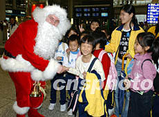 香港機場為營造圣誕節(jié)日氣氛,十二月二十日推出圣誕老人與旅客同樂活動,成為香港機場一道節(jié)日風景。潘索菲 攝