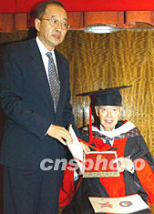 中新社香港十二月二十三日電 (記者陶社蘭)八十七歲的著名僑領(lǐng)、香港企業(yè)家許東亮先生以其愛(ài)國(guó)愛(ài)鄉(xiāng)的事跡和對(duì)僑教公益事業(yè)所做的積極貢獻(xiàn),獲頒華僑大學(xué)名譽(yù)博士學(xué)位。今天,國(guó)務(wù)院僑務(wù)辦公室副主任、華僑大學(xué)董事會(huì)副董事長(zhǎng)劉澤彭在此間為許東亮先生頒授學(xué)位。