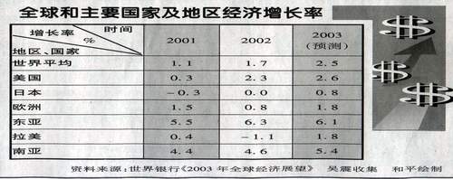 世行高級(jí)副行長(zhǎng)首席經(jīng)濟(jì)學(xué)家斯特恩在接受光明日?qǐng)?bào)記者專訪時(shí),對(duì)世界經(jīng)濟(jì)今年的特點(diǎn)進(jìn)行了具體分析。斯特恩說,“今年世界經(jīng)濟(jì)增長(zhǎng)率比人們年初的預(yù)期要低0.25%。世界經(jīng)濟(jì)今年的一大特點(diǎn)是美國(guó)、日本和歐元區(qū)的經(jīng)濟(jì)增長(zhǎng)同步放慢。具體分析起來(lái),他們衰退的原因既有相似的地方,也有不同之處!