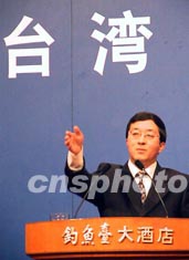 國務院臺灣事務辦公室二十五日在北京釣魚臺大酒店舉行新聞發(fā)布會,評價一年內(nèi)兩岸關系的發(fā)展。圖為新聞發(fā)言人李維一先生在發(fā)布會上答記者問。作者:武仲林