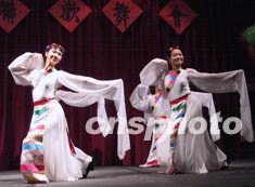 渥太華中國大專校友會(huì)等八家華人社團(tuán)二十八日晚舉行慶祝新年聯(lián)歡會(huì)。圖為當(dāng)?shù)厝A人自編自演的西藏舞蹈《凈土》。作者:蒲力
