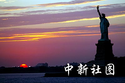 9月10日(美國紐約時(shí)間),落日下的美國自由女神像。王瑤 攝