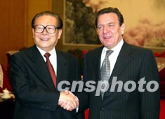 江澤民回顧了今年四月訪問德國受到德方周到安排和熱情款待的情況。他指出,當(dāng)時(shí)我與總理先生就保持兩國高層互訪勢頭、擴(kuò)大合作領(lǐng)域、加強(qiáng)文化和人員交流等方面達(dá)成了重要共識。當(dāng)前,中德兩國經(jīng)貿(mào)、科技、文教、法律、環(huán)保等各領(lǐng)域的交流與合作都取得了很大進(jìn)展。