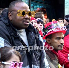 也許,這個時候,人特別需要勉強(qiáng)保持一點(diǎn)好心情,就象一些迷信的中國人,希望春節(jié)除夕大放鞭炮、驅(qū)散“霉氣”一樣。隨著時代廣場數(shù)十萬人齊聲高喊:“……五、四、三、二、一”,直徑約兩米、激光照亮的水晶球從夜空徐徐降落,十萬支紅色氣球翩翩起舞,紅、白、藍(lán)色紙屑雪花般飄灑下來。那情景,美麗,也有些夸張。不過,二○○三年降臨到美國東海岸時,人們大多希望,新一年的紐約,一切平安。(完)
