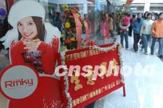 廣東惠州市數(shù)碼商業(yè)街新年之際隆重開業(yè),在新落成的數(shù)碼商業(yè)街上,影星趙薇的廣告隨處可見。中新社傳真 錢興強(qiáng)攝