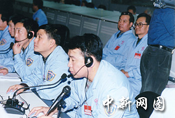 圖:科技人員精控“神舟”四號飛船運(yùn)行