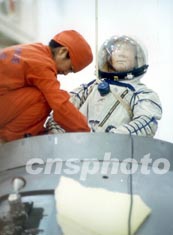 圖:中國“模擬人”進入“神舟”四號飛船