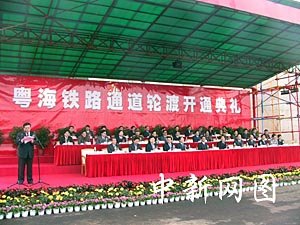 今天上午,中國(guó)鐵道部、廣東省和海南省舉行了隆重的通車儀式。中共中央政治局常委、國(guó)務(wù)院副總理吳邦國(guó)以及鐵道部、交通部、經(jīng)貿(mào)委、廣東、海南的領(lǐng)導(dǎo)在?诖a頭等候輪渡靠岸,并頻頻向火車輪渡招手。