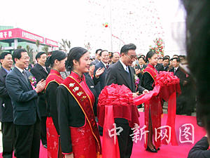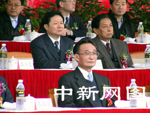 十點(diǎn)四十六分,中共中央政治局常委、國(guó)務(wù)院副總理吳邦國(guó)在棧橋火車前為粵海鐵開(kāi)通剪彩。
