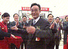 十點(diǎn)四十六分,中共中央政治局常委、國(guó)務(wù)院副總理吳邦國(guó)在棧橋火車(chē)前為粵海鐵開(kāi)通剪彩。