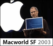 在主題演講中喬布斯首先介紹了Mac OS X和直銷店“Apple Store”的最新情況。與去年相比,使用Mac OS X的用戶約增加了3倍,達到500萬人。喬布斯宣布“由Mac OS 9向OS X的過渡已經(jīng)基本結(jié)束”。2003年估計新增用戶將達900萬~1000萬人。而直銷店“Apple Store”的情況也在穩(wěn)步發(fā)展,2002年10~12月期間銷售額達到了1億4800萬美元。去年12月有140萬人訪問了直銷店,其中半數(shù)是由Windows轉(zhuǎn)向Mac的用戶。