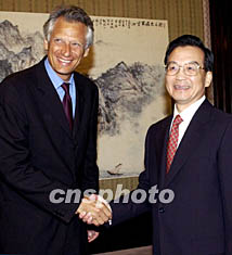 中新社北京一月九日電(記者張朔)中國國務(wù)院副總理溫家寶今天下午在中南海紫光閣會(huì)見了法國外長德維爾潘,雙方就中法關(guān)系和共同關(guān)心的重大國際問題交換了意見。