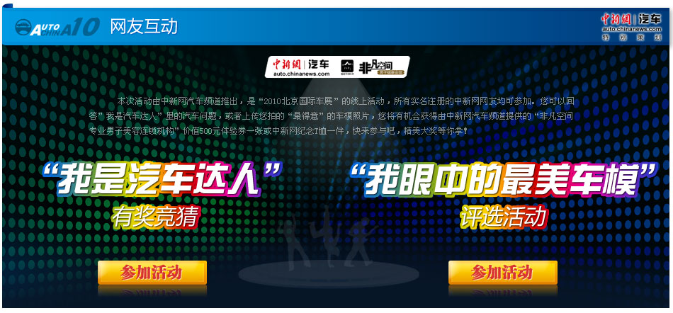 以“暢想綠色未來”為主題的2010北京國際車展開幕,本屆北京車展規(guī)模為歷屆之最,同時全球首發(fā)車、概念車數(shù)量之多將創(chuàng)下國內(nèi)車展新紀(jì)錄。中新網(wǎng)汽車頻道將圍繞車展,第三只眼看車展,從價格發(fā)掘的角度,解讀中國車市,發(fā)掘繁華背后的車市興衰關(guān)鍵點。