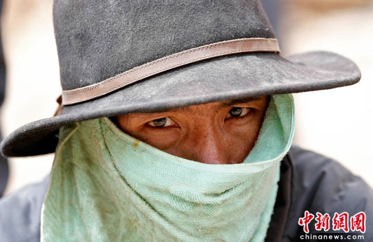 玉樹震區(qū)街頭藏民轉(zhuǎn)經(jīng)祈福