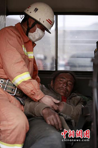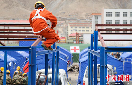 圖:西藏消防總隊(duì)在玉樹地震現(xiàn)場救援