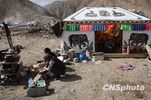青海玉樹地震 受災(zāi)民眾帳篷外準(zhǔn)備飯菜