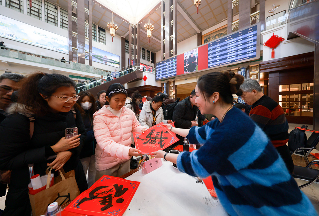 北京站內(nèi)開展“萬福迎春”書法公益活動
