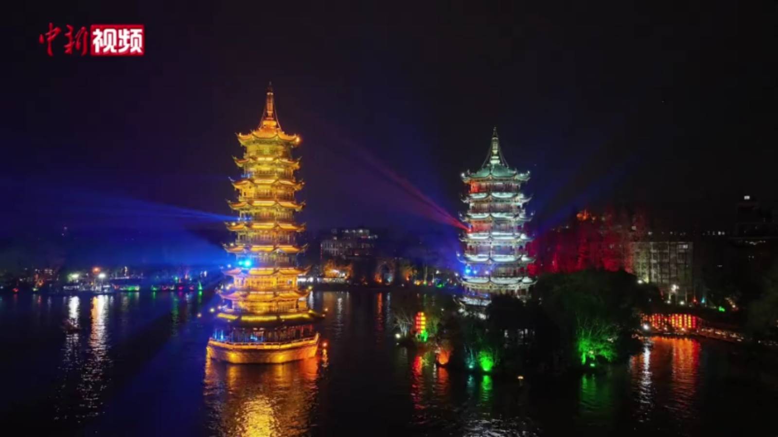 “飛天”科技與非遺鐵花同框 桂林夜空上演“山水光影秀”