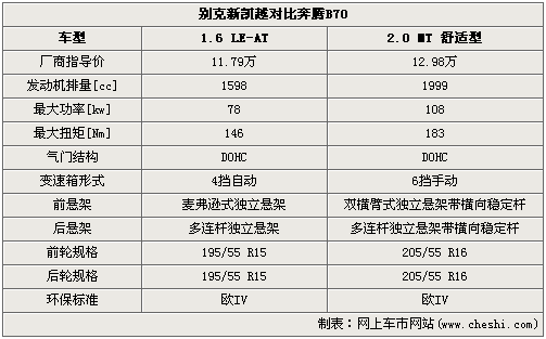 動(dòng)力方面,新凱越搭載1.6L自然吸氣發(fā)動(dòng)機(jī),最大輸出功率為78kw,最大輸出扭矩為146Nm。奔騰B70同樣使用2.0L自然吸氣發(fā)動(dòng)機(jī),最大輸出功率為108kw,最大輸出扭矩為183Nm。兩款發(fā)動(dòng)機(jī)不同排量,動(dòng)力誰強(qiáng)誰弱顯然意見。