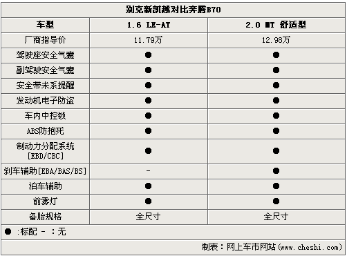 如果說今天對比的兩款車中,新凱越就是這個(gè)問題的答案。無鑰匙啟動(dòng)系統(tǒng)、真皮包裹座椅、前排座椅加熱等高級配置同級別車型無人能及,比起高一級別的B70同樣體現(xiàn)出明顯的優(yōu)勢。AUX/USB/iPod外接音源和超過6個(gè)以上的車載音響系統(tǒng),吸引來喜愛音樂的朋友們不成問題。身為車系中的最低配版本,2.0 MT 舒適型的奔騰B70還是有比較亮眼的配置,可調(diào)大燈高度、自動(dòng)空調(diào)等成為區(qū)別于新凱越的優(yōu)勢體現(xiàn)。