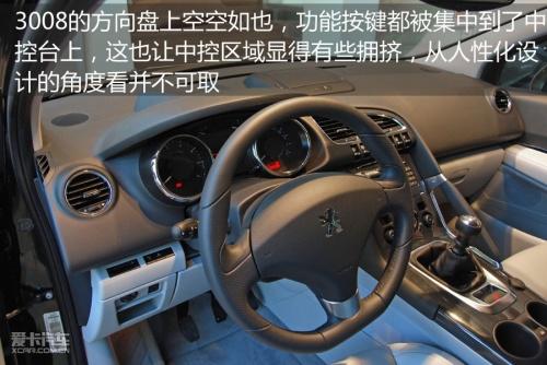 標(biāo)致3008全系車型都沒有采用多功能方向盤設(shè)計,方向盤上應(yīng)該有的功能都被搬到了中控臺上,事實(shí)上這并非理想的設(shè)計。而中控空調(diào)出風(fēng)口下方那一排類似于飛機(jī)駕駛艙上的功能按鍵則體現(xiàn)了法國式幻想主義情節(jié)。而中控臺右邊那一個真皮包裹的扶手可能裝飾的意義大于其實(shí)用性。