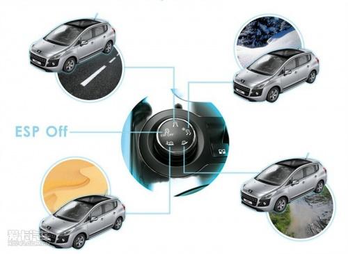 標(biāo)致3008還有一個(gè)值得一提的功能就是抓地力控制系統(tǒng);其由一個(gè)先進(jìn)的牽引力控制系統(tǒng)和特殊的泥/雪輪胎,通過自動(dòng)調(diào)節(jié)前輪的牽引力輸出方式和功率來(lái)達(dá)到對(duì)應(yīng)的效率。標(biāo)致的這套系統(tǒng)通過人工來(lái)進(jìn)行切換,其一共有五個(gè)控制檔位:標(biāo)準(zhǔn)、雪地、越野(泥地、爛路、濕滑草地)、沙石地和關(guān)閉;通過調(diào)節(jié)不同的檔位來(lái)適應(yīng)不同的路面情況。