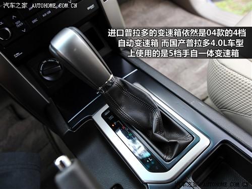 新普拉多的四幅方向盤加入了銀色裝飾條,使得整體感覺更有活力。方向盤采用真皮包裹,握起來粗細合適,手感比較出色。和老款相比,新的方向盤還集成了音響控制和藍牙電話功能。變速箱依然是老款的那個4檔自動變速箱,而國產新普拉多已經升級為5檔手自一體變速箱。