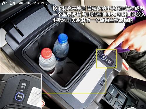 普拉多前排門(mén)板的儲(chǔ)物槽很寬很深,而且有單獨(dú)的杯架位置。而中間位置的兩個(gè)杯架都帶有限位機(jī)構(gòu),實(shí)用性很強(qiáng)。最大的亮點(diǎn)是前排的中央扶手箱,打開(kāi)制冷開(kāi)關(guān)后,它就成為一個(gè)可以容納4瓶飲料的車(chē)載冰箱啦。
