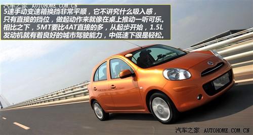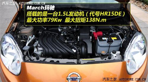 目前,該車搭載的是一臺全新的1.5L發(fā)動機(代號HR15DE),最大功率79Kw;最大扭矩138N·m。要知道在歐洲,瑪馳還有另外兩款發(fā)動機可供選擇,一臺是最大功率為59kw,最大扭矩108N·m的1.2L 3缸發(fā)動機;另一臺則是1.2L機械增壓直噴發(fā)動機,最大功率72kw,最大扭矩142N·m;與這兩款發(fā)動機相匹配的是5AT或CVT變速箱。然而,引進到國內后,東風日產瑪馳的動力總成部分改為了現(xiàn)在的1.5L發(fā)動機+5MT或4AT變速箱。