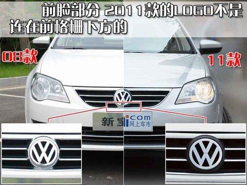 在正面特征上,新寶來2011款的前臉部分需要仔細觀察才能夠看出其中的變化。如上圖所示,2011款新寶來中網(wǎng)位置的大眾車標下方與中網(wǎng)并不相連,而2008款的新寶來在同樣位置則是與中網(wǎng)下方相連接的。