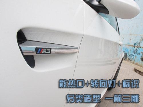 前翼子板突出的很內(nèi)斂,十點(diǎn)鐘方位擁有一個很特別的設(shè)計(jì),同時集合了三個功能,發(fā)動機(jī)側(cè)向散熱出風(fēng)口、轉(zhuǎn)向LED指示燈以及證明M3身份的標(biāo)識。頂部的線條從這里一直延伸,經(jīng)過門把手,匯入尾燈里面。