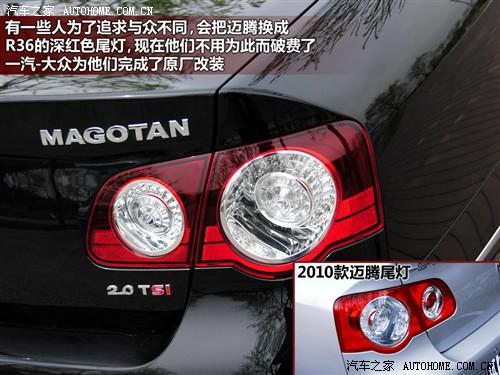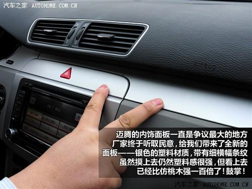 2011款邁騰的外觀和內(nèi)飾進(jìn)行了的一些修改,主要是換裝新的和R36一樣的深紅色尾燈和新的內(nèi)飾面板,另外在高配車型上增加了后排乘客調(diào)節(jié)前排副駕駛座椅的功能,其他的變化都是細(xì)節(jié)上的,對整車實(shí)用性影響不大,不過也順便把座椅位置記憶減配了。