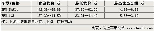 下半年華晨寶馬新款5系Li車型將會上市的消息,讓上半年的老款寶馬5系Li車型價(jià)格一一路下降。直至近期國內(nèi)各大城市的BMW老款5系Li車款都有大幅優(yōu)惠,其中北、上、廣三地的優(yōu)惠金額最高已達(dá)6.86萬元。此外BMW 1系在2009年底至2010年初的銷量明顯攀升,這與經(jīng)銷商方面的大膽讓利不無關(guān)系。目前大部分BMW授權(quán)經(jīng)銷商都可以給出1系120AT車款23-24萬元的提車價(jià),可謂“冰爽到底”了。