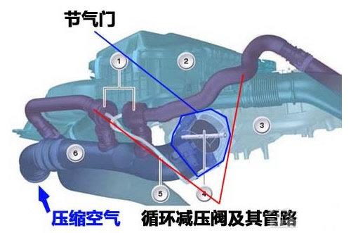 節(jié)氣門前方設(shè)計(jì)有循環(huán)減壓閥