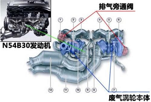 寶馬N54發(fā)動機(jī)的廢氣渦輪系統(tǒng)