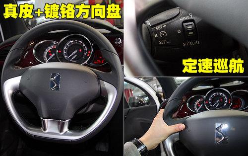 雪鐵龍DS3采用了三幅式方向盤(pán),配以銀色的裝飾面板,整體感覺(jué)運(yùn)動(dòng)時(shí)尚。這款方向盤(pán)的包覆材料為真皮材質(zhì),質(zhì)地較軟手握感覺(jué)比較舒適。