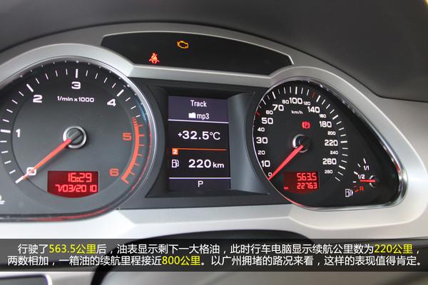 3天半下來總共行駛了563.5公里,油表顯示剩下一大格油,此時行車電腦顯示續(xù)航公里數(shù)為220公里,兩數(shù)相加,一箱油的續(xù)航里程接近800公里,雖然與理論數(shù)據(jù)有所出入,但以廣州這樣擁堵的路況來看,這樣的表現(xiàn)已值得肯定和認(rèn)同。