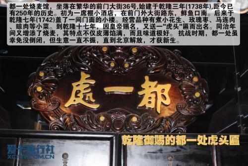 “都一處”名稱的來歷頗有幾分傳奇色彩,當年乾隆皇帝從通州微服私訪回京途經前門,當時所有的店鋪都已關門,只有一家“王記酒鋪”亮燈營業(yè),便進店用膳,由于招待周到,酒味濃香,小菜可口,所以對小店產生了興趣,便和店主閑談起來詢問酒店叫什么名,店主回答:“小店沒名”。乾隆聽后說:此時京城開門的就你一家“就叫都一處吧!”乾隆回宮后親筆題寫了“都一處”店名,將其刻在匾上,幾天后宮中派人送來這塊虎頭匾。從此“都一處”代替了“王記酒鋪”,生意十分紅火。