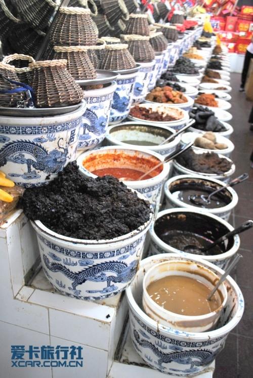 漫步至大柵欄,無意間看到六必居。“醬園六必居為最,金字招牌歷兩朝!绷鼐幼灾频母鞣N風味醬菜大名是自不必說了,其中又以八寶菜、醬黃瓜、甜黃醬、醬甜瓜等最為有名。當年北京有“五大醬園”,即:六必居、天源、天義成、寶瑞、天章涌,各有特色,而今只有六必居、天源兩家了。 想要嘗嘗當年五大醬園的味道早已不能,只有在僅存的六必居和天源去找尋當年醬園的留香。