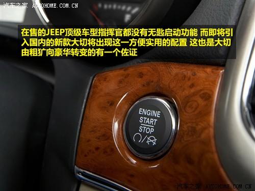 在轉(zhuǎn)向柱附近我們看到了無匙啟動按鈕,目前在售的JEEP頂級車型指揮官都沒有此功能,也許是為了追求JEEP一貫的越野復(fù)古風(fēng)格,而現(xiàn)今的2011款大切將出現(xiàn)無匙啟動,確實是一個方便實用的配置。