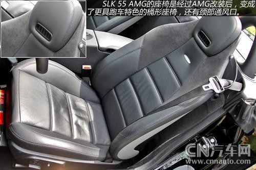 內(nèi)裝一樣非常有個人風(fēng)味的SLK55,座椅、內(nèi)門板、中央扶手均為Nappa高級真皮制成,并且有四種顏色可供選擇,AMG的座椅另外還經(jīng)過包覆與支撐性的加強,肩部亦可追加Alcantara麂皮,藉以應(yīng)付激烈操駕的需求。此車的其它不同點尚包括320km/h時速表、跑車方向盤、鋁合金腳踏板、專用地毯、不銹鋼門檻等等,而Thermatic自動空調(diào)、室內(nèi)照明組也列為標準配備。