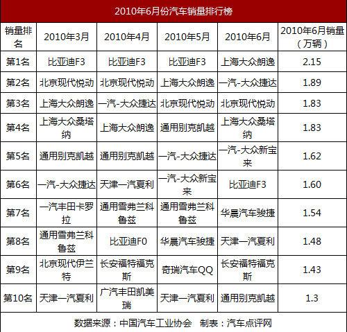 6月份的車市銷量堪稱風云突變,從銷量排行榜上來看,最吸引人眼球的變化還是比亞迪F3的滑落,從蟬聯(lián)多月第一名、到一落第6名,讓自主車型的支持者難免有幾分唏噓;而上月的第二名上海大眾朗逸,也自然上升一位,占據(jù)了6月銷量冠軍的寶座。