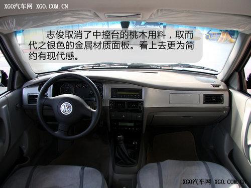 志俊車內(nèi)與桑塔納3000相比變化明顯——取消了中控臺的桃木用料,取而代之銀色的金屬材質(zhì)面板。顯然上海大眾希望以這種更為時尚的風(fēng)格來討好年輕消費者。而車內(nèi)其他設(shè)計相比桑塔納3000并無二致。