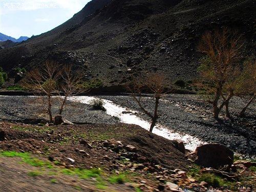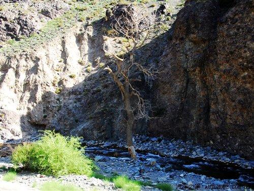 兩旁的山對(duì)我來(lái)說(shuō)已經(jīng)不陌生了,所以我把目前轉(zhuǎn)移到了山路旁的小溪,當(dāng)然小溪也是沒(méi)有太多的吸引力的,反而是那些干枯的胡楊更令我著迷,沒(méi)有葉子而且站得筆直筆直的。據(jù)了解,這種胡楊常生長(zhǎng)在沙漠中,它耐寒、耐旱、耐鹽堿、抗風(fēng)沙,有很強(qiáng)的生命力。這也很難怪在那么惡劣的環(huán)境下仍然屹立不倒。