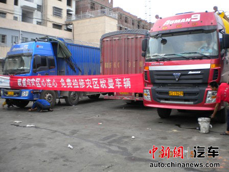 中新網(wǎng)7月19日電 2010年中國自然災(zāi)害不斷,入汛以來,西南地區(qū)持續(xù)出現(xiàn)強(qiáng)降雨量導(dǎo)致浙江、福建、江西、廣東、廣西等地區(qū)重復(fù)受災(zāi)。在江西、福建等受災(zāi)較為嚴(yán)重的地區(qū),一輛輛身著鉆石車標(biāo)的歐曼重卡在這里奔忙,他們不僅為災(zāi)區(qū)人民送來了緊缺食品如大米、飲用水、棉衣棉被、沖鋒舟等價值50多萬元的物資。同時還向?yàn)?zāi)區(qū)所有歐曼車主提供免費(fèi)車檢和配件供給服務(wù),確保所有救災(zāi)車輛工作正常,行駛正常,支援災(zāi)區(qū)受災(zāi)物資安全轉(zhuǎn)移和災(zāi)后重建工作的輜重運(yùn)輸。