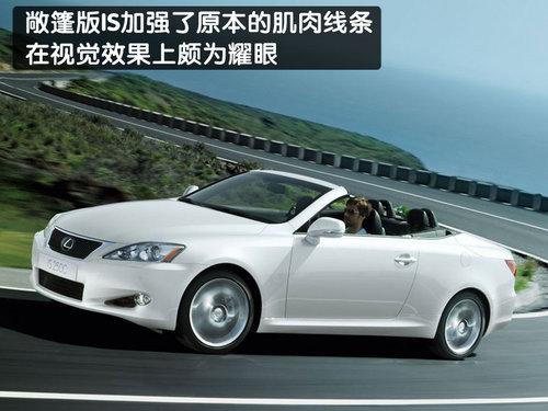雷克薩斯IS硬頂敞篷版的車身前半部的造型設(shè)計,與轎車版本的IS車系擁有極為神似的設(shè)計,前保險杠、頭燈、后視鏡以即車門把手都和轎車版本的IS車型相同。在車身側(cè)面,敞篷版IS加強了原本的肌肉線條,無論是開篷后的拉風身影,或是關(guān)篷時的跑車線條,都充滿了跑車的動感效果;車尾部分,敞篷版IS則采用全新的LED尾燈設(shè)計,以區(qū)別和轎車版本的差異,在視覺效果上頗為耀眼。